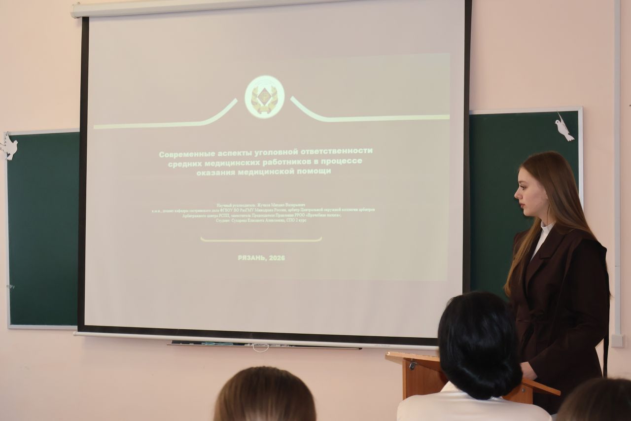 Результаты своих исследований доложила студентка кафедры сестринского дела Сухарева Елизавета Алексеевна «Современные аспекты уголовной ответственности средних медицинских работников в процессе оказания медицинской помощи» (Научный руководитель: Жучков М.В.)