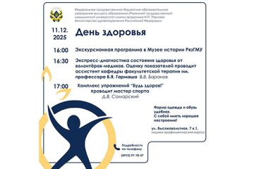 Рязанский государственный медицинский университет имени академика И.П. Павлова совместно с Научно-медицинским обществом анатомов, гистологов и эмбриологов под эгидой Министерства здравоохранения Российской Федерации проводят 11 и 12 декабря 2025 года Общероссийскую методическую конференцию «Обучение анатомии: взаимодействие теории и практики в высшей школе».